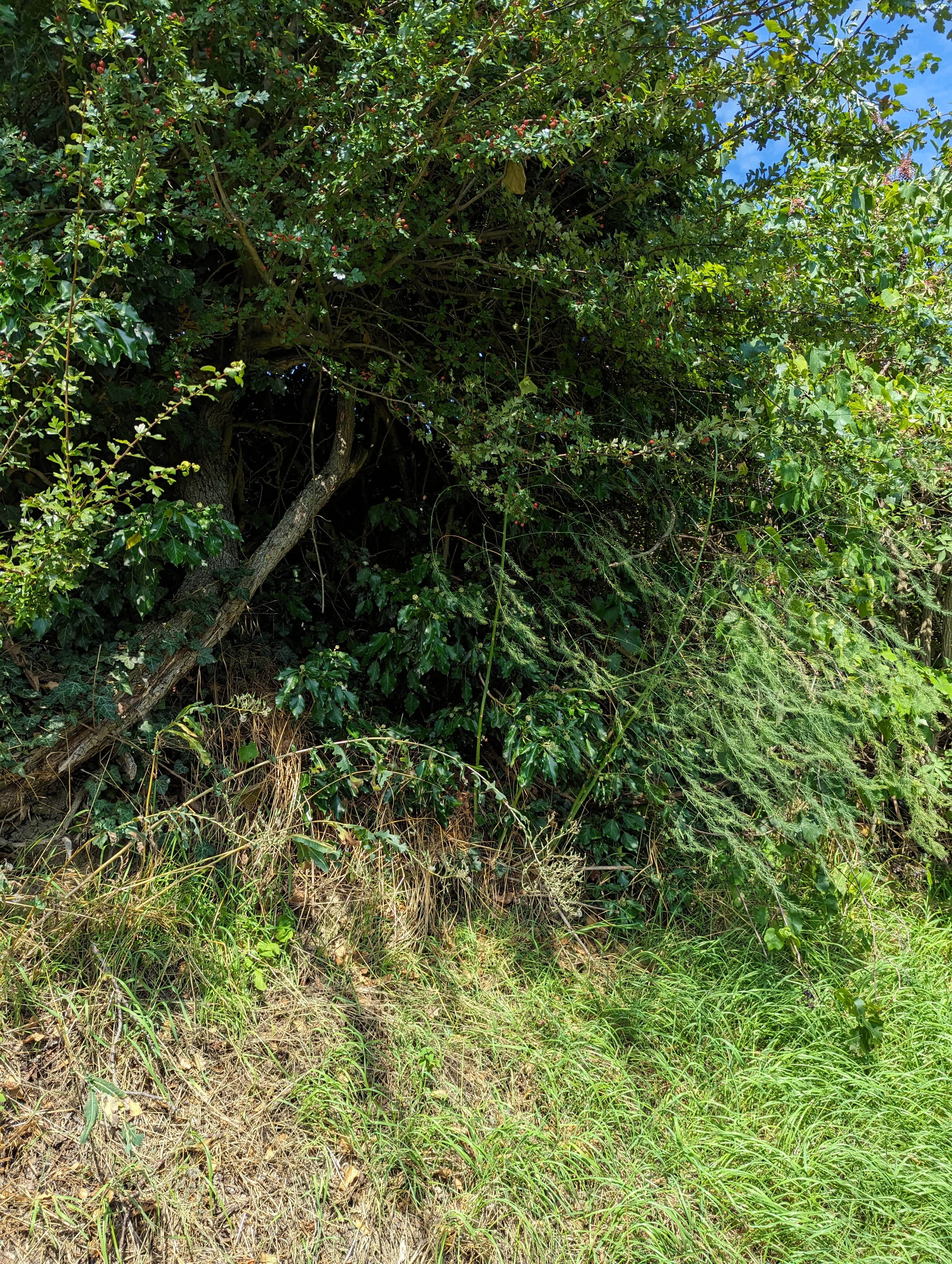 We can collect wild asparagus here. Hier kann man Spargel sammeln.